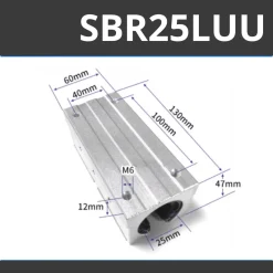 Con trượt tròn có đế thân dài SBR25LUU (Bi trượt tròn có đế)