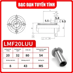 Con trượt tròn mặt bích tròn thân dài LMF20LUU (Bi trượt tròn)