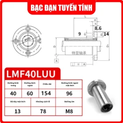 Con trượt tròn mặt bích tròn thân dài LMF40LUU (Bi trượt tròn)